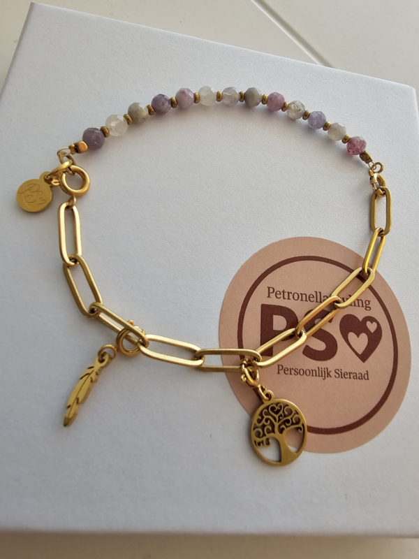 • Bestel het losse modulaire edelstenen deel om je collectie uit te breiden. De Toermalijn is mooi grijs rose en paars van kleur en facet geslepen wat de energie van de edelsteen nog krachtiger laat voelen.