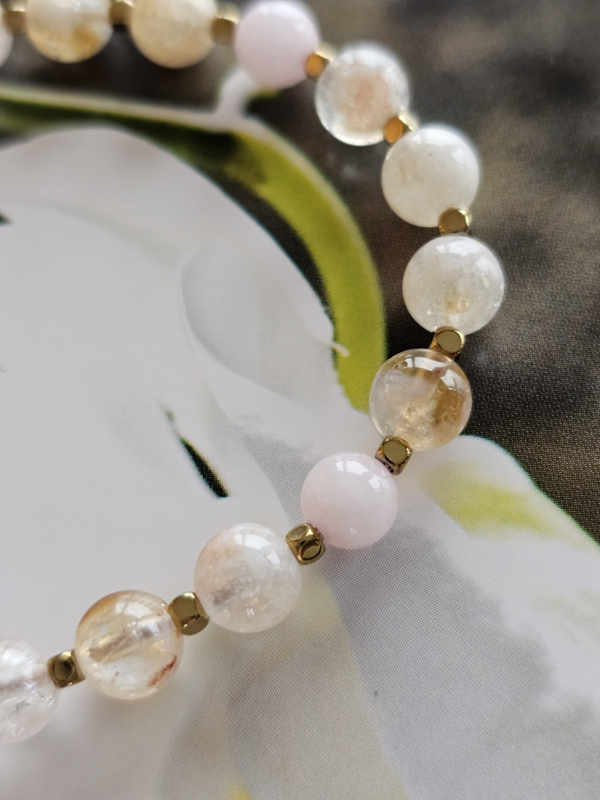 | Edelsteen soort | 6mm Golden Healer (Limoniet kwarts) en Rozenkwarts |