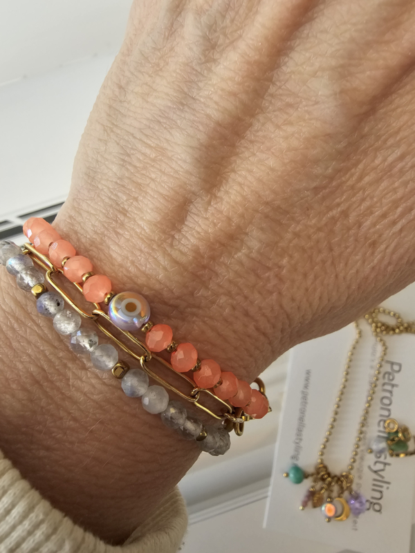 | Kleur | Neon Peach en goud |