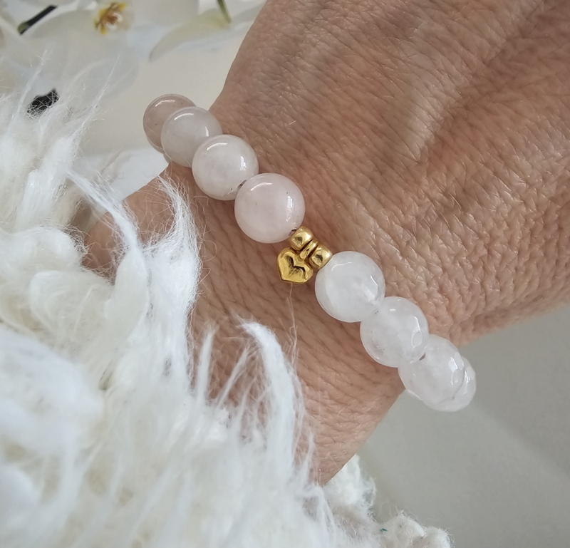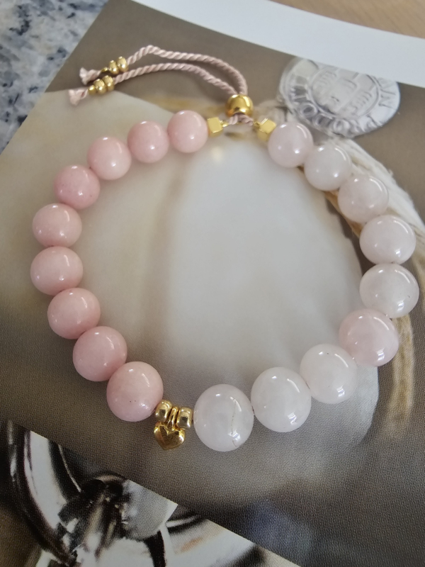 Rozenkwarts & Opaal krachtMala (hartje)Roze Opaal en Rozenkwarts Mala met gold plated Hartje.