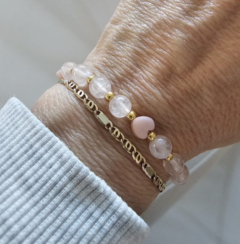 Rozenkwarts & Opaal krachtMala (hartje)Roze Opaal en Rozenkwarts Mala met gold plated Hartje.