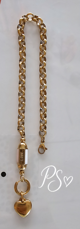 Schakeldeel van stainless steel om aan de 50/50 beads te bevestigen. Deze schakel heeft een vaste Messagebox bedel met de boodschap LOVE Incl zwaar stainless steel hartjes bedel en 12mm connector.