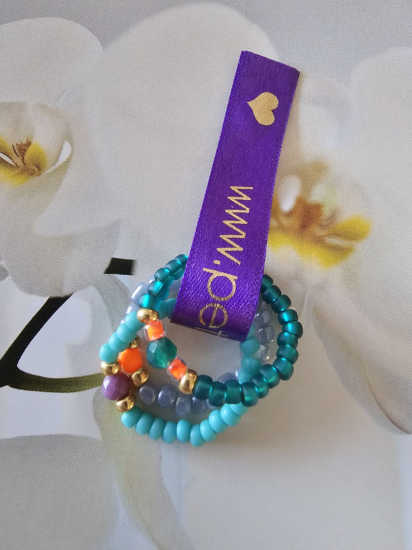 Ringetjes by PS♡Elastische ringetjes by PS♡Ik rijg zomerse ringetjes op soepel elastiek met Miyukikraaltjes en Rocailles. En soms een toevoeging DQ metaal met gouden plating.Omtrek lengte gemiddeld 6 cm. De ringetjes zijn rekbaar.Setje van drie…